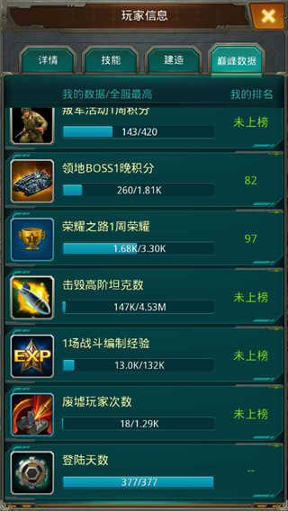 6.建筑升级,建筑主要着重于司令部,战车工厂(有能力一2个,没能力1个),改装工厂还有科技馆的升级,司令部等级决定其他建筑等级,想出高级车,就要升级车厂,科技馆的科技你用的上,但是科技馆的技能受角色声望限制。声望每天可以授勋,做日常任务。挑自己有用的升级,格外说一下战斗经验,等级越高,刷关经验越多,等级提升越快哦!刚玩就是司令不停,车厂不停!