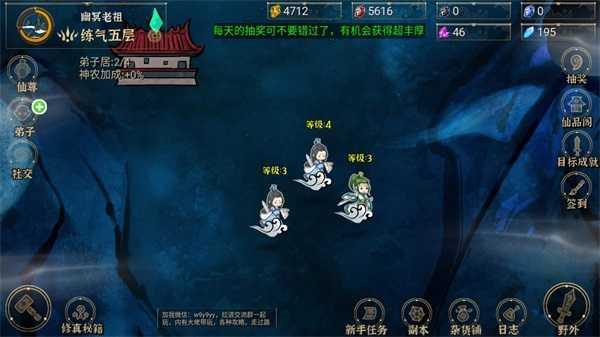 前期弟子到后期可以遣散了(毕竟不能升级)炼心台招募的弟子每次有差异建议刷到高等级才买杂货铺随机刷新的种子建议除有需要购买