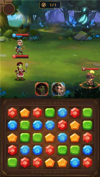 1、游戏开始,选择相同的三个方块即可消除,消除后英雄就会开展攻击。记住,只有消除对应颜色的方块英雄才会攻击,否则是无效的。