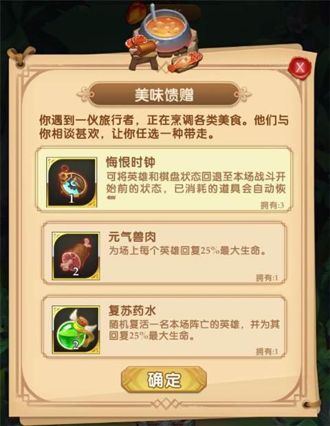 冒险家们如果选择了“美味反馈”可以选择一种道具来帮助你更好的提升你的战斗力以及状态哦!!!