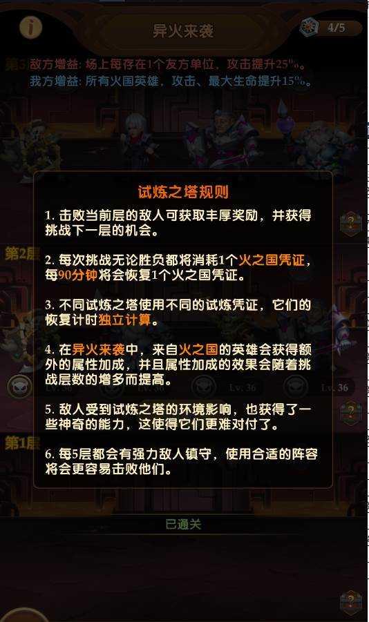 试炼之塔分为五个宝塔,每一个宝塔分别对应五个国家,玩家们可以以爬天梯的方式通过宝塔的每一层关卡从而完成任务获取星星从而领取奖励