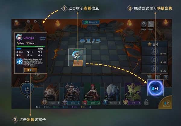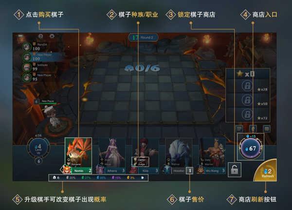 棋子商店:可在棋子商店购买棋子英雄,并使用购买的棋子来进行战斗