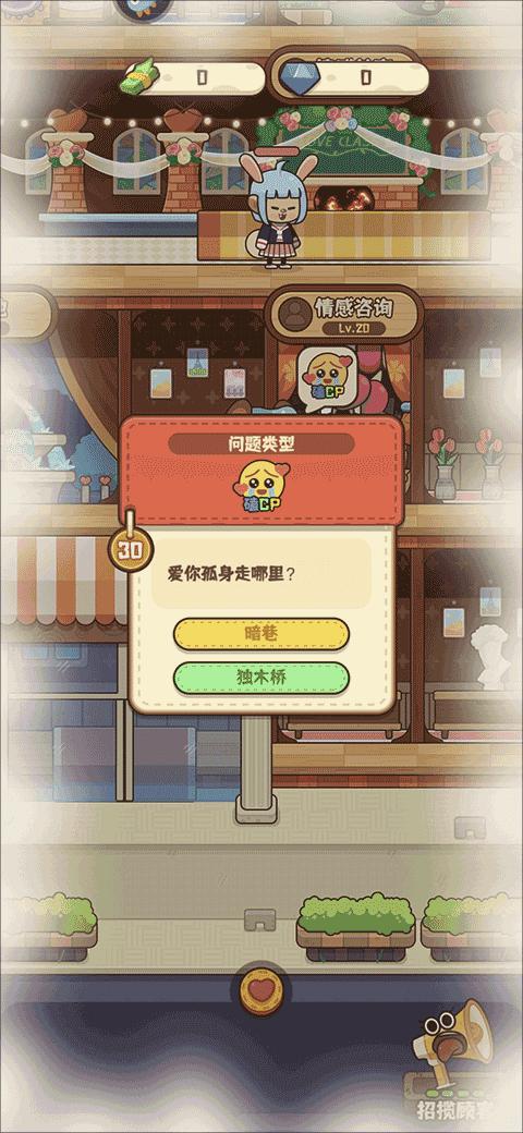 顾客们在完成最基础的信息完善后,就会来到婚介所最中心也最重要的地方——情感教室,在这里,由你来牵线搭桥,让客人们体验到他们的首次牵手体验。