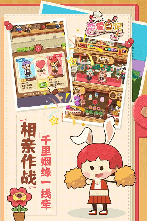 恋爱日记是一款画风可爱的卡通经营游戏,以模拟爱情为主题,玩家化身相亲会所的负责人,开了一家属于自己的店铺,帮助年轻人找到合适的伴侣。在游戏中需要招聘员工,服务每一位客户,将店铺做大做强,是女生喜欢的非常卡通的小游戏。为了让大家都能找到满意的另一半,玩家需要通过建造不同的设施给顾客解疑答惑,从而使他们魅力十足找到心中的他/她,各种精彩的故事情节带来了新颖的体验,感兴趣的朋友可以来下载体验下