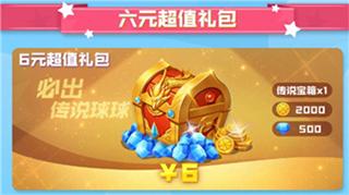 商店中有一款6元超值礼包,内含2000金币、500钻石和1个传说宝箱。