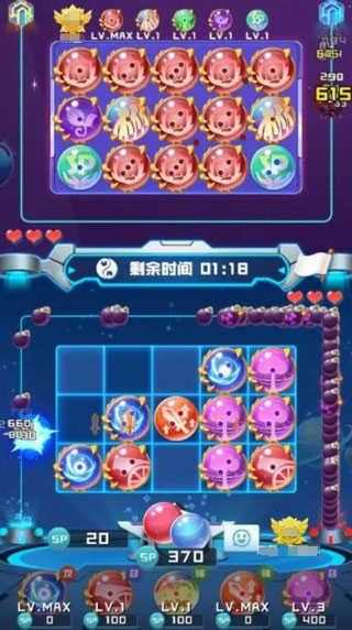 球球的种类多种多样,18种拥有强大攻击能力的球球,11种各具特色的强力辅助,10种神秘莫测的召唤球球以及5种拥有华丽控制手段的控制球球。仔细研究球球的特性,灵活搭配编队方能更为轻松的战胜对手。