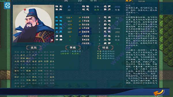 地图上的战斗则是半即时战斗模式,在你的回合内,将你的行动方案分配给所有需要行动的部队,然后在回合结束时会和NPC统一进行军事行动,这对自己的战争嗅觉有一定的要求。而战斗则有极为丰富的战法和特技可以使用,而名将所独有的特种兵则更会让战斗变得更为丰富和激烈。智将的计策也会在战场发挥十分重要的作用,而部队中的副将则会填补主将能力的不足。