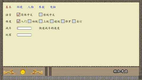 手机版中目前设置共分为基本、人物、参数、电脑四个选项卡。
