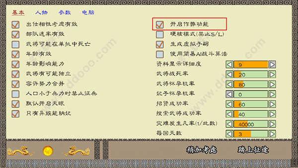 开启后,城池人口少于城池兵力时,将无法征兵,贴合史实。