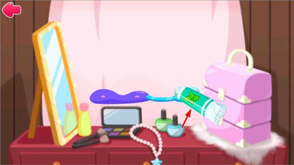 4、玩家在右侧工具栏上挑选合适的牙膏,再滑动牙膏放到牙刷上;