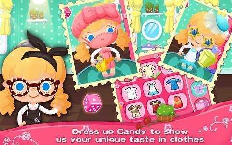 8、糖糖工作也要美美哒,赶紧在大厅中点击糖糖,帮她挑选美美的衣饰吧。