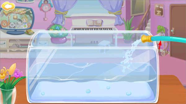 5、然后再陪哥哥玩一局钓鱼游戏,鱼缸好像很久没有清理过了,快用刷子把它擦干净吧,这样小鱼也有个干净的家啦;