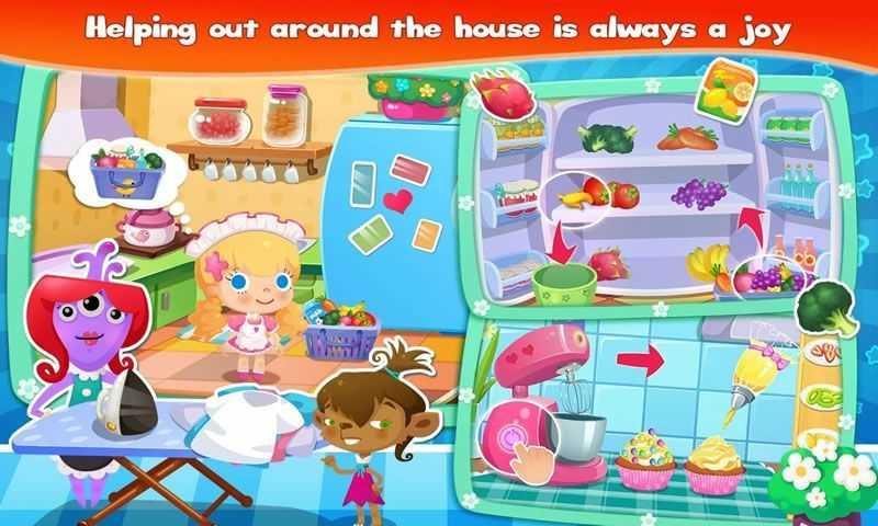 2、看,小糖糖在这儿呢,现在你可以带着她在家里四处走动啦,乖宝宝糖糖可是大家眼里的小甜心,玩耍之余还不忘做家务呢;