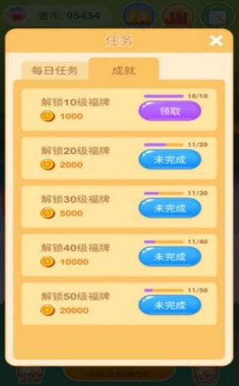 3、完成成就得奖励,升级福牌到成就规定的等级就可以解锁成就,解锁成就可以获得丰厚的金币。