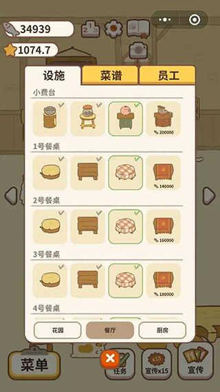 9、餐厅:多解锁菜谱和客人,有的客人用餐完毕后会掉落1-2颗星哦!