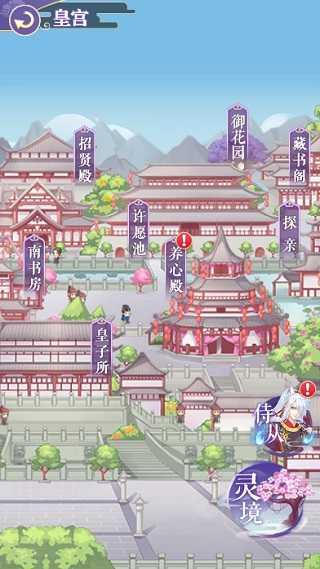 6、皇宫(1级开启):包括御花园、招贤殿、藏书阁、许愿池、探亲、养心殿、皇储所、南书房。