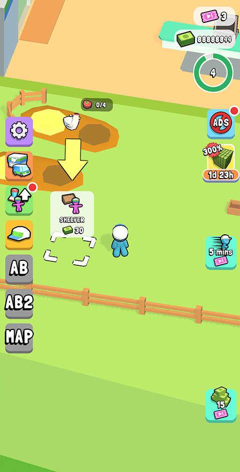 1、首先我们进入我的迷你超市游戏,第一步就是先解锁一些货架,开始售卖产品;