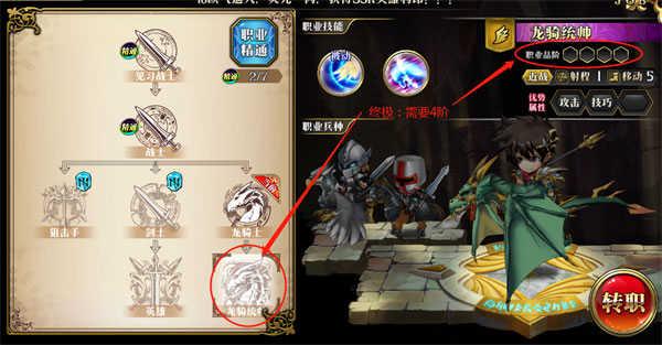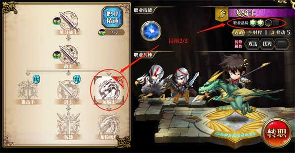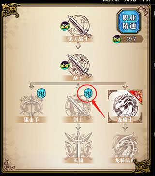 马修的初始职业是见习战士,这个每个人都是一样的。下一阶段升级为战士(脱离见习),每个人也都是一样的。当战士职业精通后,即将面临第一次转职,本人选了龙骑职业。第一次面临分支是不需要魔导石的,而且该分支继续向下发展也不需要魔导石,如下图:红圈里的东东~