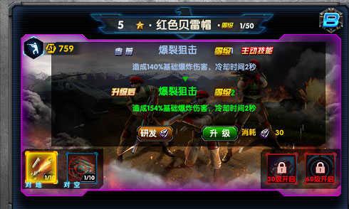 装备系统作为游戏第二大的成长系统,提供了非常强悍的属性加成。一件普通的装备,也可以通过各种升级操作让它变得异常强大。装备分为4种适应类型:装甲单位、步兵单位、飞行单位、建筑单位,每个装备都可以适应
