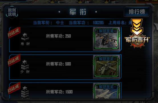 最高警戒手机版中每一位指挥官都能通过自己的努力,将自己从一名中士官职升为最高的大元帅军衔。军功是高低影响每周获得的金币和科技点奖励值,军功每提升一级都可开启一个给力技能。