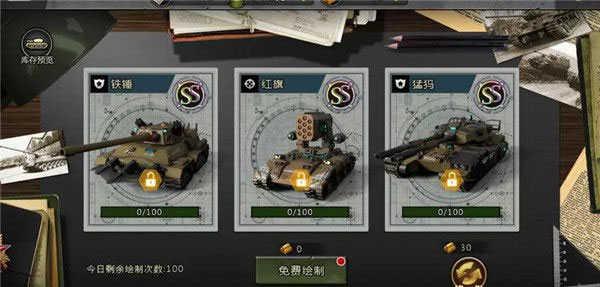 坦克图纸不但可合成坦克,还能进行坦克升星大幅提升战力,解锁的城市只能获得一般图纸,最主要的获取途径还属【科研中心】,这里会从玩家身上已拥有的坦克图纸中每天随机刷新出图纸,如果有幸获得一张SS神级坦克图纸,便可在这里定向绘制,价格都是其次,主要是绘制必出图纸哦。