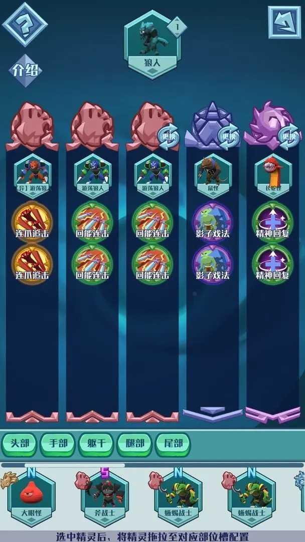 5、统领部位类型调整:统领部位中后三个部位可以通过调整类型来实现不同的精灵策略配组。