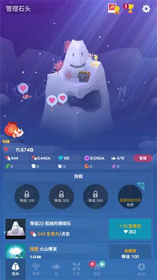 石头,珊瑚,鱼三者平均发展即可。后期主要还是交替升石头和买鱼,珊瑚的话,一般当你持有的生命比珊瑚造价高一两个字母之后,去一次性给所有珊瑚升一遍100级就行了(建议算一下自己升25级石头需要的生命总量是多少,和鱼的造价相比,哪个便宜先升哪个,这样可以更快得获得奖励,让你的水族馆成长得更快哟)