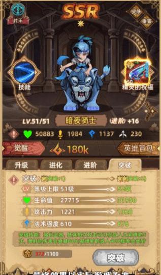 通关3-5boss关解锁的玩家可消耗万能勋章来为英雄突破,英雄突破后可解锁特殊突破技能、以及大量突破属性。