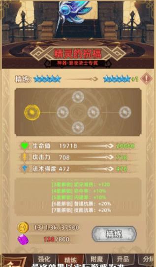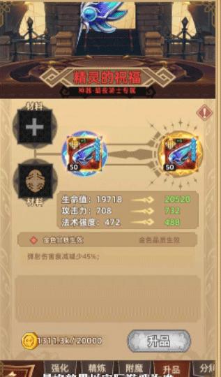 通关2-4boss关解锁的玩家可消耗同名神器或指定道具提升神器品质,升品极大的提高神器的三围属性,以及神器专属技能效果。