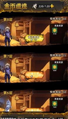 通关2-1boss关解锁的玩家可通过挑战金币透迹获得大量金币,金币遗迹等级越高、金币数量越多,金币在游戏中是消耗量极大的养成资源,占据很重要的地位。