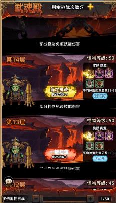 通关1-3boss关解锁的玩家可通过挑战武法魂殿获得大量英雄勋章用于英雄进化升星,武法魂殿等级越高、勋章数量越多。
