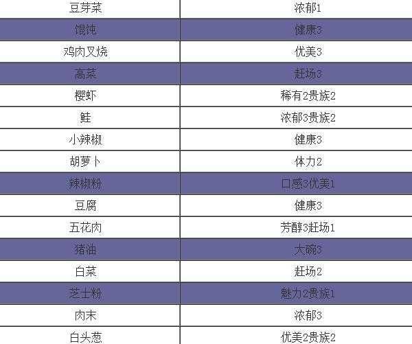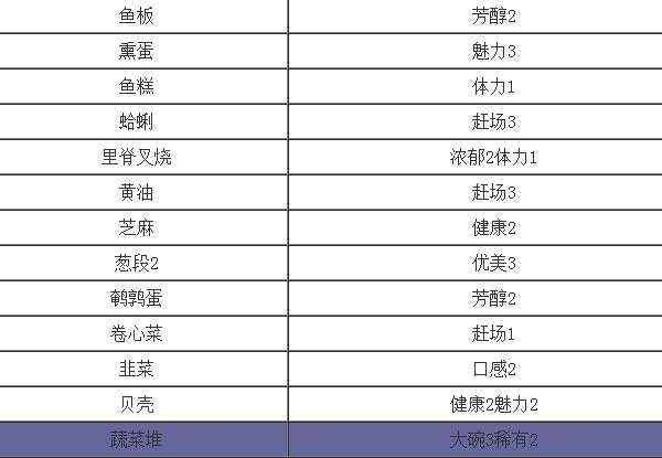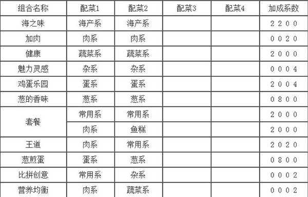 其他配菜方案可以具体看上面的配料对应技能和效果去搭配自己所需要的。