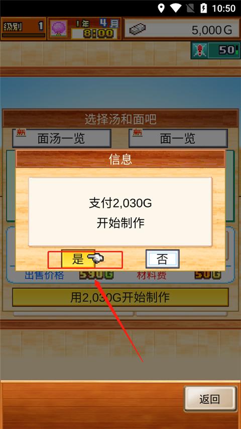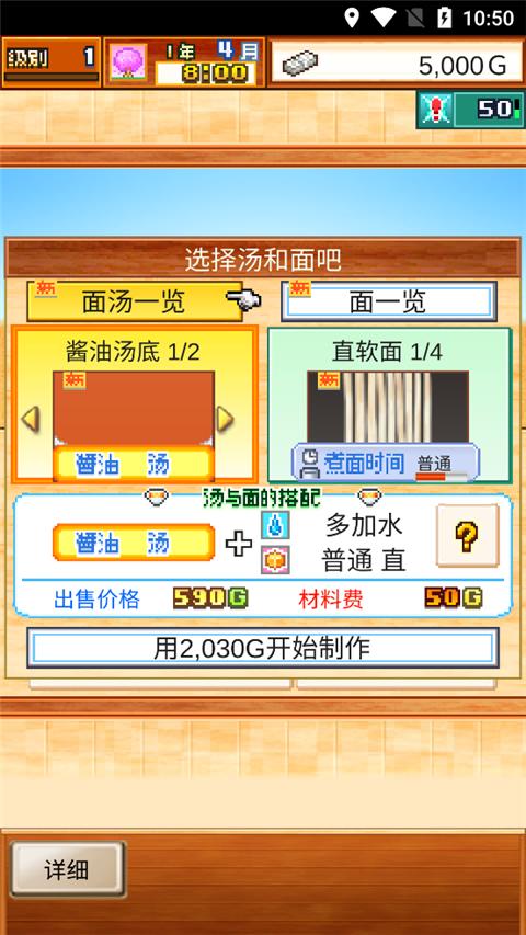 5、有客人店面的时候就需要你选择汤和面制作出客人需要的面,选好之后点击“制作”。