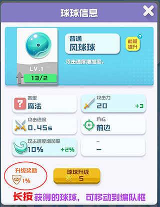 球球升级后,你会获得永久的暴击属性加成,是对所有球球生效的哦!所以千万别忘了升级!