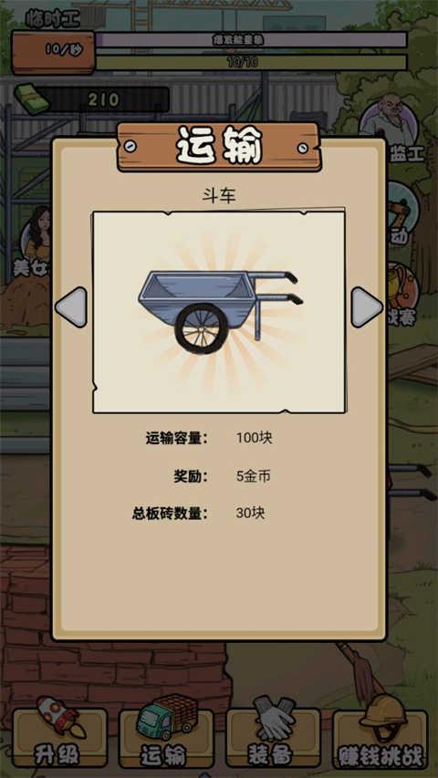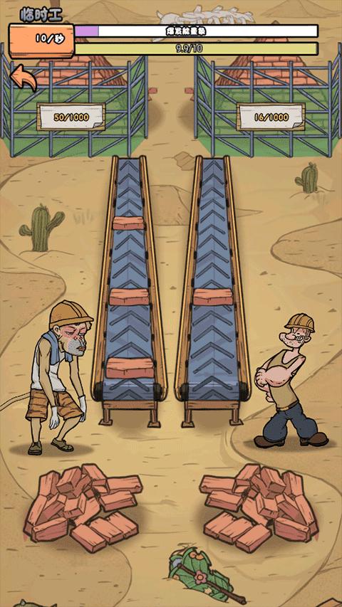 4、点击屏幕即可开始搬砖,谁先达到目标就能获得胜利,比较考验玩家的手速;