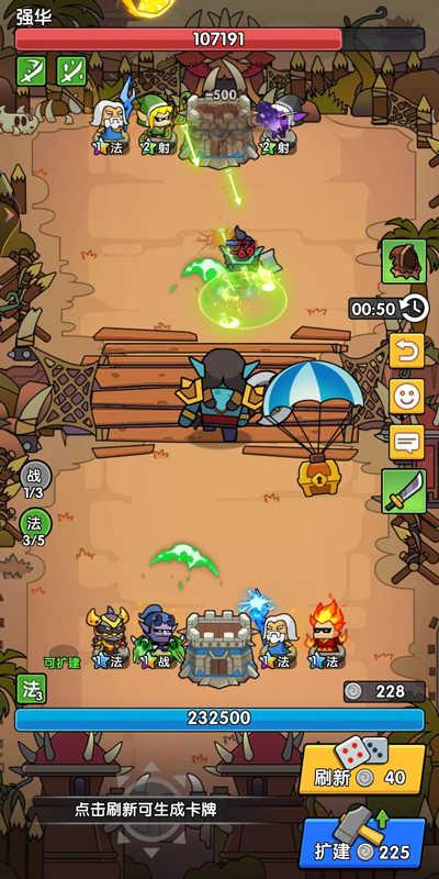 开局直接刷卡拉满3射手凑阵容效果,后续再考虑出控制龙猫跟牛头人,两个控制对面直接战斗力掉一半 。如果对面输出不高,我们可以5射1辅,然后再把骨魔队长升到4级,激活5射手效果。牛头人可以防对面召唤或者内战射手,如果想要保守一点可以把龙猫换成小樱防对面控制。