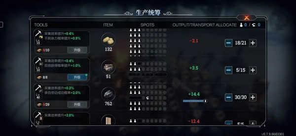 经济界面显示的是你的整体收入/产出以及工人情况,涵盖资源、食物、医疗、住房和生产5个部分。