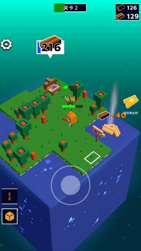 4、当前游戏模式主要是关卡制,每一关的世界探索都有不一样的体验,除了前期的资源采集,里面还包括战斗、冒险都丰富元素,若玩家遭遇怪物,武器会自动替换,你要做的便是控制距离,利用走位消灭怪物。