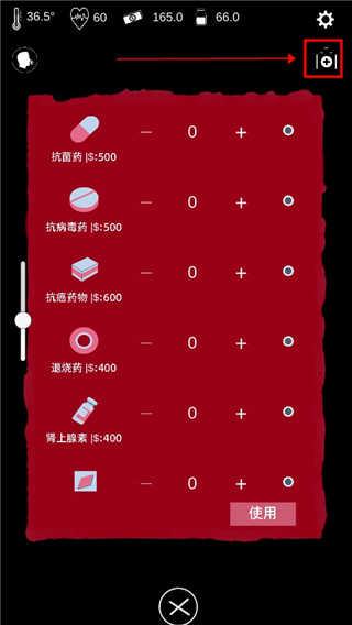 8、在右上角设置下方可以选择你所需要的药物,通过药物来打败病菌。