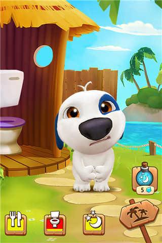 等到再长大一点,汉克狗还会多一项洗澡的程序,你进入软件可以看到汉克狗非常的脏,就像家里的小狗一样,一身的泥,这个时候你就需要给他进行洗澡了。