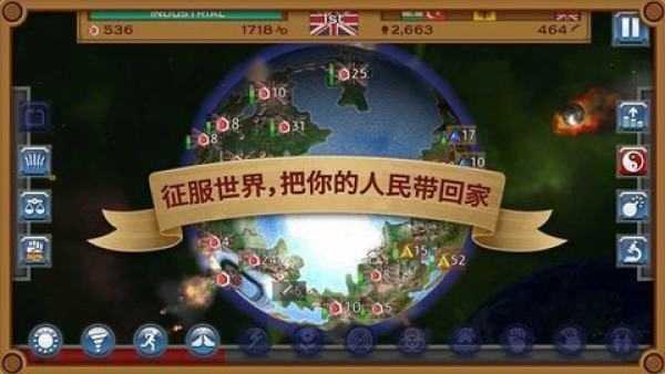 狂欢征服世界(Rapture)内购版是一款以全球霸权为主题的游戏。这个游戏最大程度的简化了操作和各种麻烦的数据。玩家只需要关注军人群体。同时,游戏还提供了一个奇迹,一个可以干扰对手,强化自己技能的奇迹。你可以选择一场战斗,看你能否在规定时间内达到称霸世界的目的。
