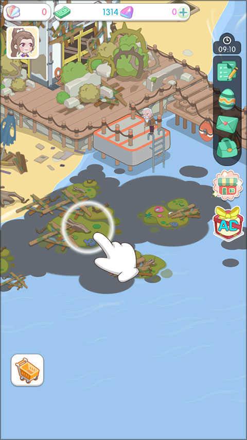 1、下载安装好岛村建设者,进入游戏首先通过点击屏幕来清理垃圾。