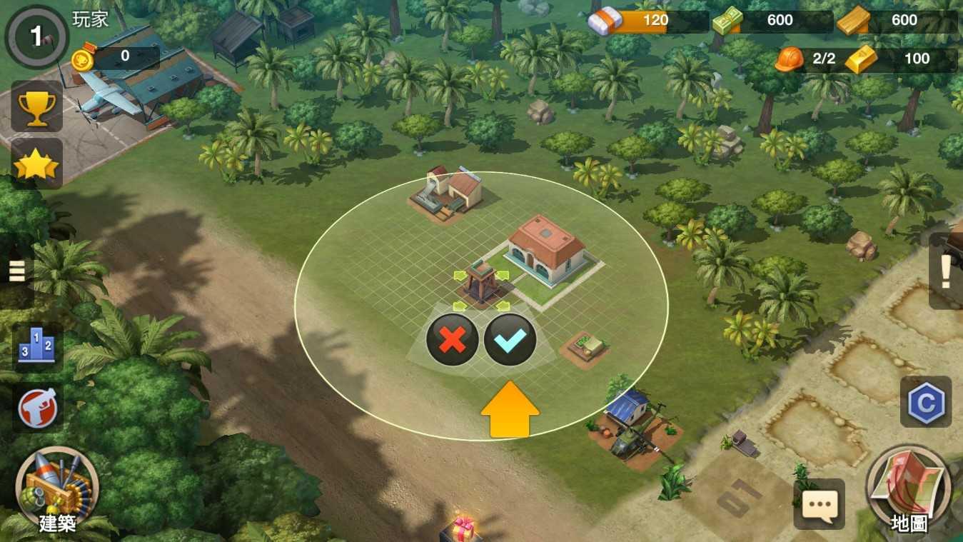 1、进入到卡特尔战争游戏中之后,第一步我们需要建造一个守望塔达到防御领地的效果;