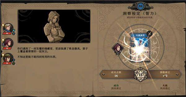 1、一些事件地点会要求大家投出骰子进行决策,而能否成功则取决于大家的属性和骰子投出的点数。