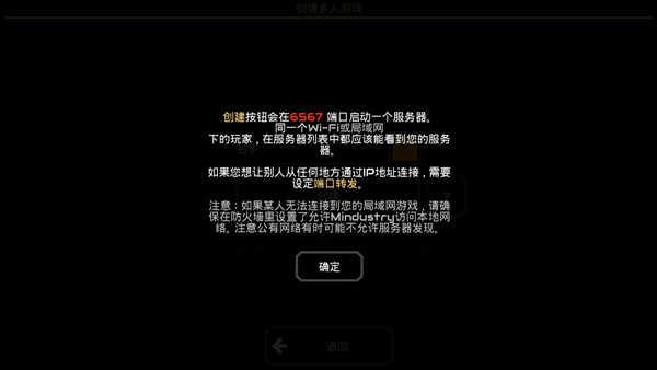 2、创建局域网游戏按钮会在6567端口运行一个服务器,任何在同一个WiFi或本地网络下的人都应该可以在服务器列表中看到你的服务器。如果你想让别人在任何地方都能通过IP地址链接,你需要设定端口转发。