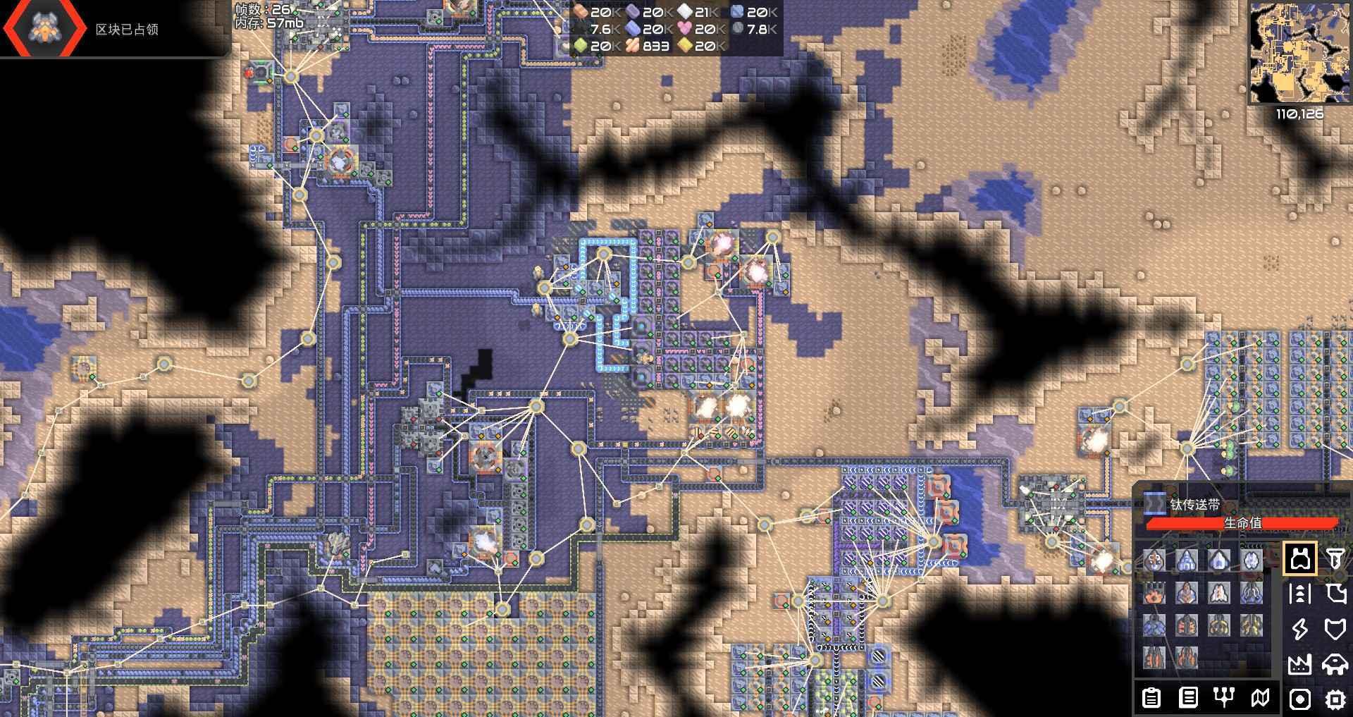 1、传送带一定要从钻头拉到基地和其他二级产物生产机,也要拉到炮台,这样炮台才能攻击。