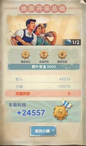 油价不好的时候很多玩家会选择建油罐先把油攒起来,然后等油价高的时候或者等油攒的差不多再通一波天然气卖出。但囤油的时候可要注意时间;还有计算好自身的运力,不要像我一样到了12月底卖不完油还有大半桶烂在仓库里。一般来说9月左右就要开始盘算着准备卖油跑路的事了,如果油采完了记得提前结束还能多拿1000块钱奖金。