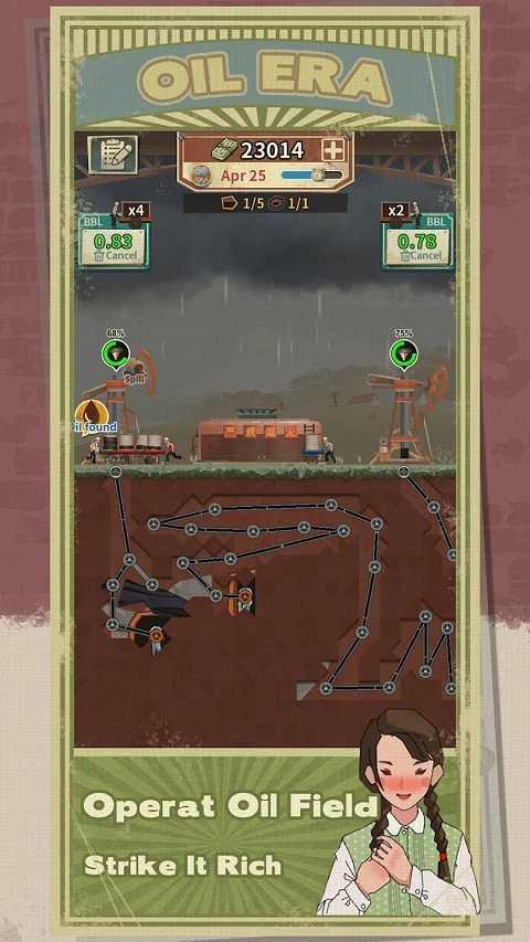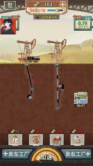 竞标土地开发权,使用勘探者发现石油。建造高效的油井和管道,将石油带到地面。购买卡车和储油桶来运输和储存石油。以更高的价格出售石油并获利!