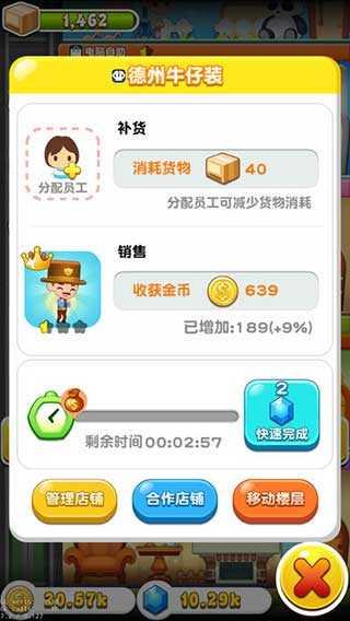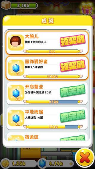 普通商铺中主要包也是包含服饰,餐饮、文娱和百货这些类型,但类型比较丰富,随着楼层的增加还会逐级解锁,同时只需要花费金币即可。