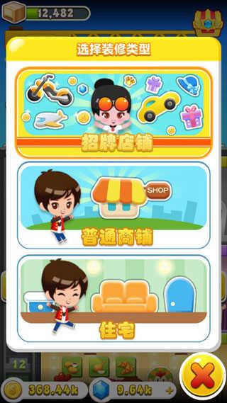 2、建好了之后就可以剪彩啦,并且在房间中玩家们通过选择不同类型的商铺来决定这一层楼的商铺是做什么用的,通常需要玩家们合理的安排每层楼的位置,并且尽量完成旁边的任务。